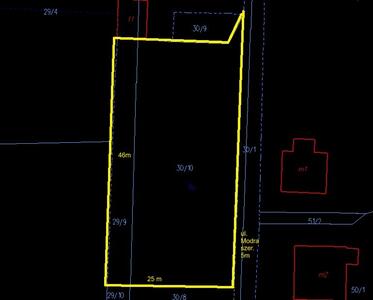 Działka budowlana w kształcie prostokąta o powierzchni 1023m2. Dojazd z drogi gminnej - przez prywatną drogę na ...